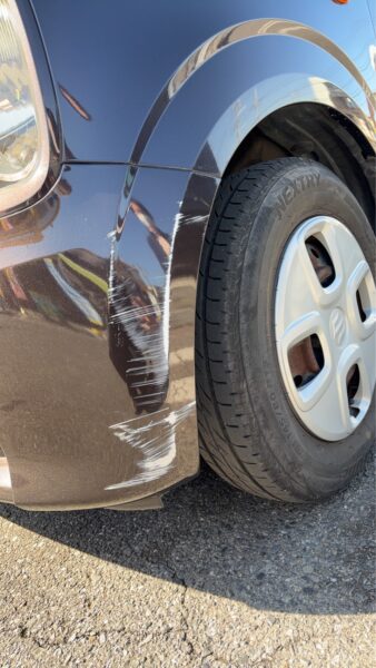 水戸市でスズキ・アルトのバンパー修理|50cmのガリ傷が37,000円。赤塚・水戸駅周辺で安くて早い板金屋ならアウルへ!