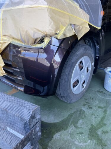 今回はバンパーを丸ごと1本塗るのではなく、キズを中心に塗装する「部分塗装(ぼかし)」を採用しました。ただ塗るだけだと、後から色の境目が浮き出てしまうことも。そこを「どこまでが修理箇所かプロが見てもわからない」レベルまで馴染ませるのが腕の見せ所。37,000円という価格以上の満足感をお届けします。