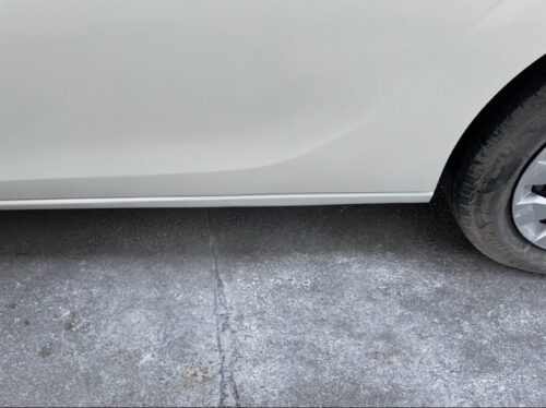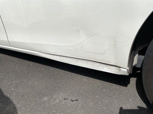 日産・セレナの左スライドドアからステップ(ロッカーパネル)にかけての擦り傷・凹みを修理しました。ディーラーでは「ドア交換」と判断され、30万円を超える高額見積もりになりやすい事例ですが、アウルでは熟練の板金技術で鉄板を叩き出すことで部品交換を回避。パーツ代を一切かけずに、スライドドアとステップの2箇所をあわせて総額150,000円(税込)で施工しました。ミニバン特有の長いプレスラインも違和感なく復元し、新車時のツヤと強度を取り戻した事例です。
